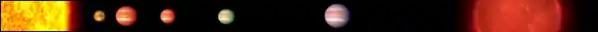Comparação entre a posição de Júpiter e 55 Cancri d em seus respectivos sistemas.