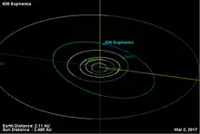 - «A órbita do asteroide 630 Euphemia» (em inglês)