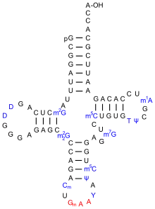 ARNt no qual se pode observar a presença da 7-metilguanosina (m7G).
