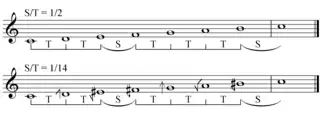 Na música contemporânea e no jazz, este temperamento foi utilizado por compositores como Alois Hába, Ivan Wyschnegradsky, Julián Carillo, Iannis Xenakis, Ezra Sims, James Tenney,[1] Joe Maneri e Ezra Sims.[3] Hába e Wyschnegradsy chamavam a escala de sistema de doze avos de tom.[4][5] Manieri e Sims usam notação própria, chamada "notação de Manieri-Sims".[3]