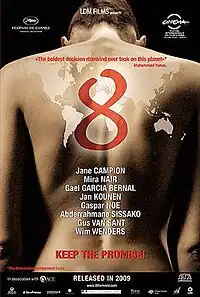 8 é um filme francês de 2008, dirigido por vários cineastas de diferentes países — Wim Wenders, Abderrahmane Sissako, Mira Nair, Gael García Bernal, Jane Campion, Jan Kounen, Gaspar Noé e Gustave Van Sant, sobre os oito objetivos do milênio.