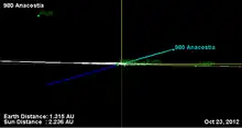 - «A órbita do asteroide 980 Anacostia» (em inglês)