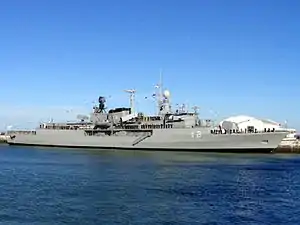 | Armamento | Canhão de Duplo Propósito 1x OTO-Melara 127/54C, de 127mm CIWS OTO-Melara DARDO, de 40mm Míssil Superfície-Ar Selenia Aspide (em um lançador octuplo Selenia/Elsag Albatros, total de 24 mísseis) Míssil Anti Navio Aérospatiale MM.40 Exocet (em dois lançadores quadruplos, total de oito mísseis) Torpedo WASS A244-S, de 324mm (em dois lanaçdores triplos ILAS-3) |