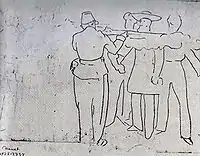 Manet realizou várias versões deste tema. A primeira está no Museu de Belas Artes de Boston, fragmentos da segunda versão estão reunidos na National Gallery (Londres), o esquisso final está em Ny Carlsberg Glyptotek Copenhaga e a composição final está no Museu de Mannheim.[2]:273