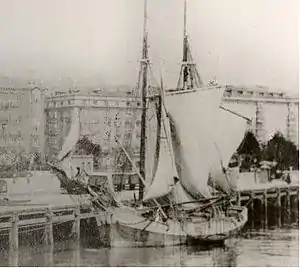 Patacho é um barco a velas, armado com dois mastros com uma vela de proa redonda a frente e a a ré com outra do tipo latina.[4]