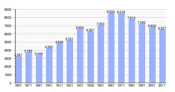 | Variação demográfica do município entre 1861 e 2011[3] |