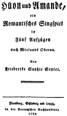 Sua esposa Sophie Seyler morreu em 1789. No início daquele ano, ela publicou a ópera Huon e Amanda (ou Oberon), com base em um poema de seu amigo e colaborador Christoph Martin Wieland. Uma versão levemente adaptada da ópera de Seyler,[25] com música de Paul Wranitzky, tornou-se a primeira ópera executada pela trupe de Emanuel Schikaneder em seu novo teatro e estabeleceu uma tradição na companhia de óperas de contos de fadas de Schikaneder que culminaria em dois anos. mais tarde na ópera de Mozart e Schikaneder, The Magic Flute; Oberon, de Sophie Seyler, é considerada uma das principais influências na trama e nos personagens de A flauta mágica.[26]
