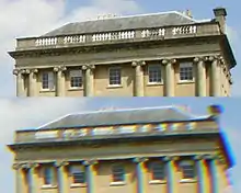 A imagem formada em um anteparo por essa lente apresentará assim, de maneira mais visível próximo de suas bordas, as cores do arco-íris misturadas com o desenho da imagem. Esta distorção é chamada aberração cromática: em outras palavras, uma imperfeição na reprodução correta das cores da imagem.