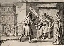 Isaque, como seu pai, disse que Rebeca era sua irmã, e a história se repetiu, incluindo novamente a intervenção divina. Houve novamente uma disputa por poços, cujo resultado foi um acordo.[4] Abimeleque, mesmo sendo inimigo de Isaque, procurou manter sua amizade, por ver como Deus o fazia prosperar.[5]