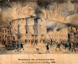 No Norte, houve muita violência por multidões, o que a imprensa às vezes chamava de "mobocracy". Em 1837 o Rev. Elijah P. Lovejoy, que publicou um jornal abolicionista, foi morto por uma multidão em Illinois. Apenas seis meses depois, o novo, amplo, moderno e caro salão que a Sociedade Antiescravidão da Pensilvânia construiu na Filadélfia em 1838 foi queimado por uma multidão uma multidão três dias após sua abertura. Houve outros tumultos antiabolicionistas em Nova York (1834), Cincinnati (1829, 1836 e 1841), Norwich, Connecticut (1834),[40] Washington, D.C. (1835), Filadélfia (1842) e Granville, Ohio. (seguindo a Convenção Antiescravidão do Estado de Ohio, 1836),[41] embora também houvesse um distúrbio pró-abolição (mais precisamente um motim pró-escravo fugitivo) em Boston em 1836[42] (e veja Resgate de Jerry - "Jerry Rescue"). Entre 1835 e 1838, a violência antiabolicionista "se estabeleceu como uma característica rotineira da vida pública em praticamente todas as principais cidades do norte".[43]