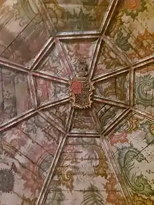 Se o brasão que o teto ostenta é original (o que é muito provável), isto é, contemporâneo à sua execução, poderemos datá-lo a partir dos finais da primeira metade do séc. XVIII, altura em que se concretiza a ligação dos Monteiro de Vasconcelos Mourão aos Guedes Carvalho, apelidos representados heraldicamente.[6]