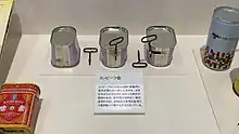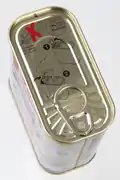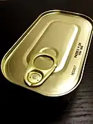 Durante o século XIV,[10] o processo de enlatamento foi mecanizado e refinado, com as paredes das latas se tornando mais finas. O abridor de latas com chave giratória foi patenteado por J. Osterhoudt em 1866.[11] Ainda não havia um abridor de latas de uso geral, portanto, cada lata vinha com um abridor de latas soldado por pontos ou com chave de torção soldada que se soltou após fatigar o metal dobrando em uma região fina. Cada tipo de alimento tinha seu próprio tipo de lata e vinha com seu próprio tipo de abridor de lata. Carne e peixe enlatado eram vendidos em latas retangulares. Essas latas eram equipadas com uma chave de torção que rolava em torno da parte superior da lata, removendo uma tira pré-marcada.[12] Café,[13] grãos e outros tipos de carne eram embalados em cilindros com tiras de metal que podiam ser descascadas com seus próprios tipos de chaves embutidas que rolavam pelo topo da lata.[14] Latas de leite usavam dispositivos de punção.