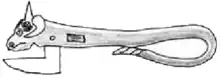 Em 1858, outro abridor de alavanca de formato mais complexo foi patenteado nos Estados Unidos por Ezra Warner de Waterbury, Connecticut . Consistia em uma foice afiada, que era enfiada na lata e serrada em sua borda. Um guarda impediu que a foice penetrasse muito na lata. O abridor consistia em várias peças que podiam ser substituídas em caso de desgaste, especialmente a foice.[16] Este abridor foi adotado pelo Exército dos Estados Unidos durante a Guerra Civil Americana (1861-1865); no entanto, sua foice em forma de faca desprotegida era muito perigosa para uso doméstico. Um abridor de uso doméstico chamado "abridor de cabeça de touro" foi projetado em 1865 e era fornecido com latas de carne em conserva chamada "Bully beef". O abridor era feito de ferro fundido e tinha uma construção muito semelhante ao abridor de Yeates, mas apresentava um formato mais artístico e foi o primeiro passo para melhorar a aparência do abridor de latas. O desenho com cabeça de touro foi produzido até a década de 1930 e também foi oferecido com o formato de cabeça de peixe.[17]