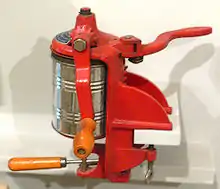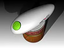 O primeiro abridor de lata elétrico foi patenteado em 1931 e modelado com base no design do abridor de lata com roda giratória.[56] Esses abridores foram produzidos na década de 1930 e anunciados como capazes de remover tampas de mais de 20 latas por minuto sem risco de ferimentos.[57] No entanto, eles tiveram pouco sucesso. Os abridores elétricos foram reintroduzidos em 1956 por duas empresas californianas. A Klassen Enterprises de Centerville lançou um modelo elétrico montado na parede,[58] mas esse projeto complexo também era impopular.[7]
