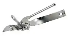 O primeiro abridor de lata de roda giratória foi patenteado em julho de 1870 por William Lyman de Meriden, Connecticut e produzido pela empresa Baumgarten na década de 1890.[18] A lata deveria ser furada no centro com a haste de metal afiada do abridor. Então, o comprimento da alavanca teve que ser ajustado para caber no tamanho da lata, e a alavanca fixada com a porca borboleta. A parte superior da lata foi cortada pressionando a roda de corte na lata perto da borda e girando-a ao longo da borda da lata.[19]