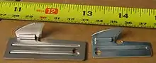 A forma e o design de alguns desses primeiros orifícios de fulcro do abridor de "chaves de igreja" lembrava o orifício de um porta-chaves de nó duplo de uma grande chave antiga.[41] Em 1935, surgiram as latas de aço de cerveja com tampa plana, sendo necessário um dispositivo para perfurar as tampas. O mesmo abridor foi usado para perfurar essas latas. Feito de uma única peça de metal prensado, com uma ponta afiada em uma das extremidades, foi idealizado por D.F. Sampson,[42][43] para a American Can Company, que descreveu as instruções de operação nas latas.[44] O abridor de chaves de igreja ainda está sendo produzido, às vezes como parte de outro abridor.[45][46][47][48] Por exemplo, um abridor "borboleta" geralmente é uma combinação da chave da igreja e um abridor de roda dentada.
