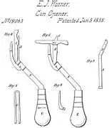 - Ezra J. Warner (5 January 1858) "Can opener" Patente E.U.A. 19 063