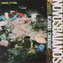 Sob tal influência, Acabou Chorare foi composto e gravado. No sítio de Jacarepaguá, vivia toda a banda junto com mais outros parentes e amigos, no estilo de vida comunitário típico dos hippies; a quantidade de moradores era suficiente para promover animadas peladas nos finais de tarde, o que os fez criar o time Novos Baianos F.C. e lançarem o disco pós-Acabou Chorare justamente com tal título, Novos Baianos F.C. (1973). Como conta Moreira, "Podia faltar grana para a comida, mas sempre tínhamos dinheiro para comprar maconha e equipamentos esportivos."[19] A rotina do Cantinho do Vovô era simples. Como conta Paulinho Boca, "Depois do café da manhã, Galvão ia compor, Moraes ficava tocando. A gente se exercitava muito, ia pra praia de bicicleta. Quando o sol estava acabando, começava o baba", diz, referindo-se ao codinome baiano para as peladas de futebol.[20] A capa do disco, uma mesa de madeira que havia sido construída por Pepeu, mostra pratos e copos espalhados, talheres e panelas desarrumadas, moscas e farinha, simbolizando "mistura" musical e o espírito comunitário do grupo no sítio.[20][21] Em 1972, ela recebeu prêmio de melhor produção gráfica do ano; a arte leva assinatura de Antônio Luis Martins, mais reconhecido como "Lula", protagonista do cult-movie Meteorango Kid - O Herói Intergalático (1970), de André Luiz de Oliveira.[22]