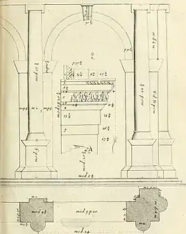 François Blondel (1618-1686), é bem conhecido por seu papel na história da arquitetura: ele foi o primeiro diretor da Académie Royale d'Architecture, o criador da Porta St. Denis e o autor do Monumental Cours d'architecture (Paris, 1675-83). A obra mais famosa e certamente mais influente de Blondel foi seu Cours, publicado em doze pequenos volumes, de 1771 a 1777. Baseado em palestras proferidas em 1777, o Cours claramente não é uma série de notas de aula; o todo foi revisado, ampliado. As personalidades e polêmicas do século XVIII estão refletidas com precisão nesta obra; eles são avaliados e colocados, por assim dizer. Mas o próprio Blondel não completou o Cours. Ele terminou as duas primeiras seções lidando com 'Decoração' e 'Distribuição', mas deixou apenas quarenta e oito páginas de escrita e algumas placas para a terceira, em 'Construção'. [6]