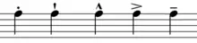 São sons mais fortes que não coincidem necessariamente com o acento métrico e que o compositor situa livremente. Estes escrevem-se com diversos sinais na partitura acima ou abaixo da nota.