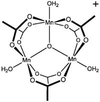 Acetato de manganês(III) é um composto inorgânico usado como agente oxidante em sínteses orgânicas[1] e na ciência dos materiais[2] . Tal como os acetatos análogos de ferro e cromo, ele é um complexo de coordenação centrado no oxigênio, contendo três átomos de manganês por unidade de acetato.[3]