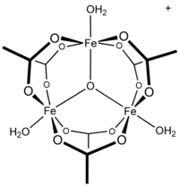 Acetato de ferro (III) ou acetato férrico, comumente conhecido como acetato de ferro básico, é um composto químico com a fórmula [Fe3O(OAc)6(H2O)3]OAc (OAc é CH3CO2-). É um sal, com um ânion acetato e o cátion triangular [Fe3O(OAc)6(H2O)3]+..[2] Cada metal no cátion é ligado a seis átomos de oxigênio, incluindo um óxido triplamente ligado no meio do triângulo equilátero. As águas de ligação podem ser substituidas por outras bases de Lewis, tal como a piridina.