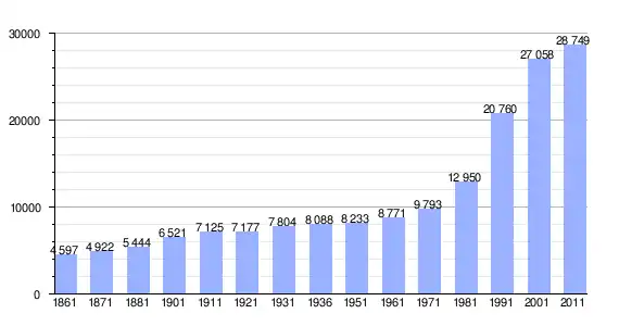 | Variação demográfica do município entre 1861 e 2011[3] |