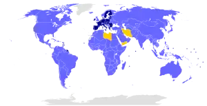 A UE e 193 estados, totalizando mais de 98% das emissões antrópicas, ratificaram ou aderiram a este tratado.[35][36][37] Os únicos países que não o ratificaram estão no Oriente Médio: o Irã é o maior poluidor deste grupo.[38] Eritreia, Líbia e Iêmen fizeram o mesmo.[35]