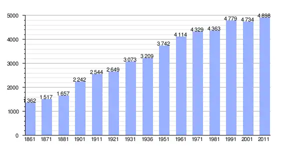 | Variação demográfica do município entre 1861 e 2011[3] |