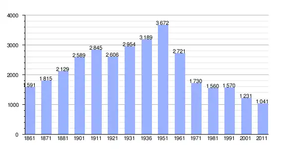 | Variação demográfica do município entre 1861 e 2011[3] |