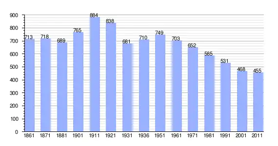 | Variação demográfica do município entre 1861 e 2011[3] |