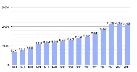 | Variação demográfica do município entre 1861 e 2011[3] |