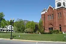 Igreja Católica Notre Dá com o monte Greylock ao fundo em Adams