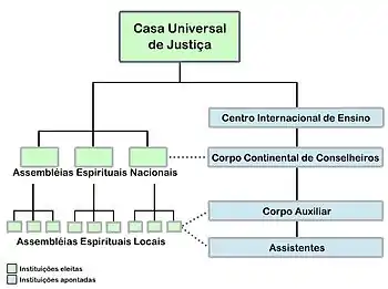 A instuição Suprema da Fé Bahá'í é a Casa Universal de Justiça, cuja sede fica localizada em Haifa, Israel no Centro Mundial Bahá'í no Monte Carmelo.