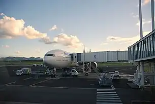 O aeroporto se localiza em uma altitude de 5m. Possui uma única pista asfaltada de 3.300m de comprimento e 45m de largura[2], que está apta a receber aviões grandes.