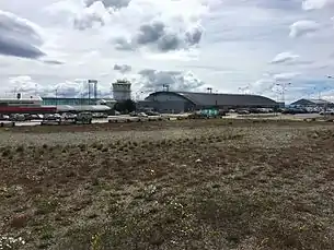 Instalações comerciais: área paga de estacionamento, instalações de carga, e um terminal com 3 portões de embarque de passageiros.[4]