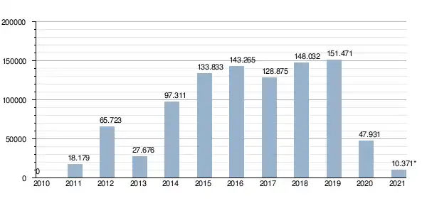 Números de passageiros que passaram pelo Aeroporto por ano desde sua inauguração em 2011.[1]