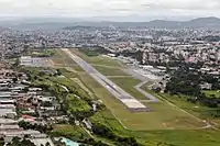 1961 - A pista atingiu comprimento 2540 metros e entrou em funcionamento um novo pátio de manobras, com capacidade para receber aeronaves de maior porte, incluindo alguns jatos.[23] Com isso, autoridades da cidade e do estado tomaram iniciativas e conseguiram homologar o aeroporto como Internacional.[21]