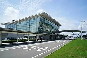 O serviço internacional agendado para Seul começou em 2006, usando novas instalações internacionais no terminal do aeroporto.[2] Em 2016, os planos foram finalizados para construir um novo terminal internacional de 5.700 m² ao sul do terminal existente, com o objetivo de 500.000 passageiros internacionais por ano até 2030.[4] A construção começou em outubro de 2017 e a abertura está prevista para dezembro de 2018. O terminal existente também será expandido e renovado até setembro de 2019.