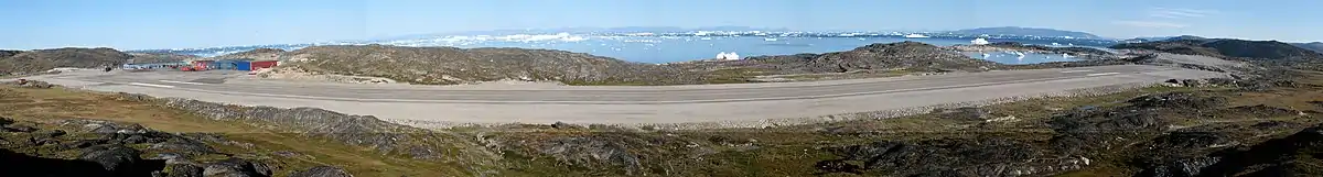 Vista panorâmica do Aeroporto de Ilulissat em Agosto