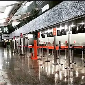 Área de check-in, teve aumento de capacidade operacional antes com 12 balcões de e atualmente com 16 balções