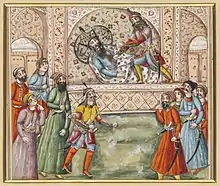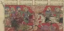 Afrassíabe enviou exércitos a Pérsis e Sistão, que foram derrotados por Carã e Dastã. Os antigos prisioneiros iranianos temiam a raiva e frustração de Afrassíabe, e apelaram a Agrerate para salvá-los. Para tal, fez com que fossem libertos e entregues ao general iraniano Casvade, que os levou de Sari a Zabol. Ao saber disso, Afrassíabe ficou furioso e cortou seu irmão ao meio com sua espada. Com isso, Dastã moveu seu exército contra Afrassíabe para vingar o sangue de Agrerate. Ele percebeu, entretanto, que o país precisava dum rei para que Afrassíabe fosse repelido. Zave, neto de Manuchir, foi coroado. Apesar da guerra permanecer inconclusiva, esgotando ambos os exércitos, conseguiu forçar a retirada do inimigo e devolver prosperidade e abundância ao Irã. Então, com a morte de Zave, a guerra foi renovada. Os iranianos apelaram a Dastã, que passou o comando a seu filho Rustã. Também ciente de que era necessária a figura do rei, deu a tarefa a Caicobado, um príncipe de sangue real, na cordilheira Elbruz. Assim que recebeu a coroa, se preparou à guerra. Na batalha que se seguiu, Rustã procurou Afrassíabe. Atacou-o ferozmente e conseguiu arrancá-lo da sela; Afrassíabe mal conseguiu escapar e o exército turaniano recuou. Instado por Afrassíabe, que se encontrava sem rival para Rustã, Paxangue pediu a paz. O Oxo foi novamente designado como fronteira.[1]
