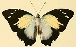 | Agatasa calydonia (Hewitson, 1855)[1] ![]() Vista superior de A. calydonia, retirada de llustrations of New Species of Exotic Butterflies: Selected Chiefly from the Collections of W. Wilson Saunders and William C. Hewitson, com a descrição de seu tipo nomenclatural. | |||||||||||||||||||||