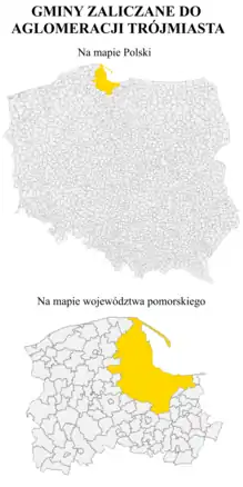 Em 2009, o Departamento de Desenvolvimento Regional e Espacial do Gabinete do Marechal da Voivodia da Pomerânia preparou o Plano de Desenvolvimento Espacial para a Voivodia da Pomerânia, no qual caracterizou a aglomeração da Tricidade e delimitou sua área. Segundo o Gabinete do Marechal, a aglomeração inclui três cidades com direitos de condado: Gdańsk, Gdynia, Sopot e 27 comunas. Ao realizar a delimitação, os seguintes aspectos foram considerados: aspectos espaciais, socioeconômicos, jurídico-políticos, ecológicos, funcionais-técnicos e econômicos. Na área delimitada, os componentes básicos de sua estrutura foram distinguidos e as ligações internas e externas foram consideradas.[2]