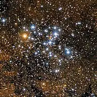 Tem magnitude aparente 4,2, sendo possível observá-lo a olho nu sob boas condições de visualização. Suas estrelas mais brilhantes podem ser visualizadas com o auxílio de binóculos ou pequenos telescópios. Situa-se a 1600 anos-luz da Terra e sua idade foi estimada em 100 milhões de anos. Na esfera celeste, situa-se logo a norte da ponta da "cauda" da constelação de Escorpião.