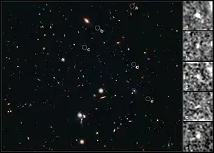 - «Hubble Pinpoints Furthest Protocluster of Galaxies Ever Seen». ESA/Hubble Press Release. Consultado em 13 de janeiro de 2012
