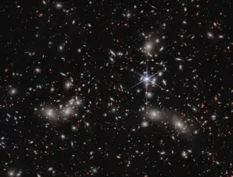 Aglomerado de galáxias Abell 2744 (Hubble).[14]