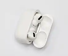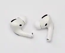 AirPods Pro são fones de ouvido intra-auriculares sem fio Bluetooth projetados pela Apple, lançados inicialmente em 30 de outubro de 2019.[1][2] Eles são os fones de ouvido sem fio de médio porte da Apple, vendidos ao lado dos AirPods de nível básico e dos AirPods Max de última geração. Os AirPods Pro usam o processador H1 encontrado nos AirPods de segunda geração, mas adicionam cancelamento de ruído ativo, modo de transparência, configuração automatizada de perfil de frequência, resistência à água IPX4, estojo de carregamento com carregamento sem fio e pontas de silicone intercambiáveis.[3]