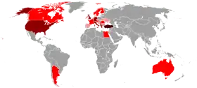 | Mapa da diáspora albanesa ao redor do mundo. | ||||||||||||||||||||||||||||||||||||||||||||||||