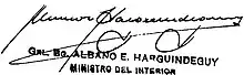 | Nascimento | Albano Eduardo Harguindeguy 11 de fevereiro de 1927 General Roca (departamento de Córdova) |